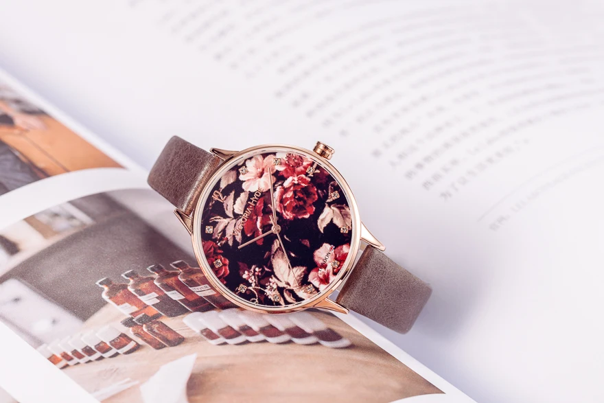Flower Printed Series,variety of flowers elements are used freely in the dial design, not only exudes the original beauty of natural ecology, but also make girl more beautiful and elegant and show the magic of England style.