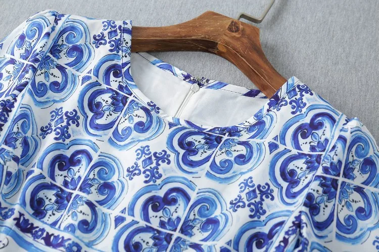 Top Quality!New Arrival 2015 Autumn Fashion Dress Women 3/4 Sleeve Vintage Blue White Porcelain Print Slim Fit Dress